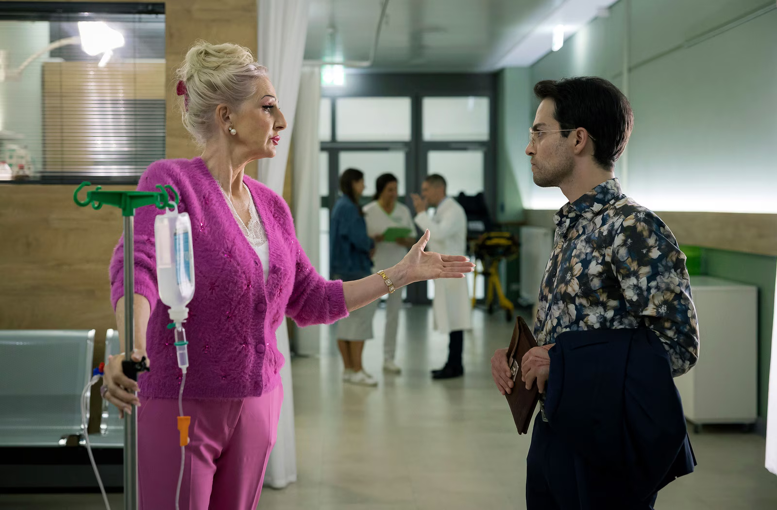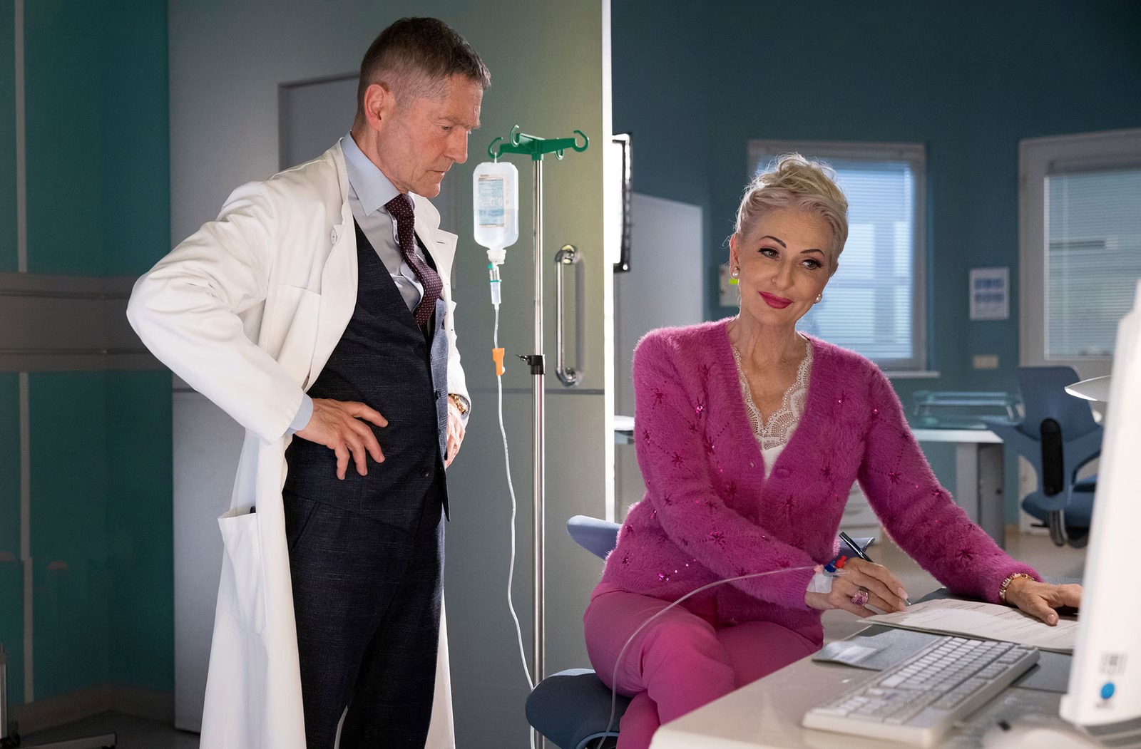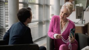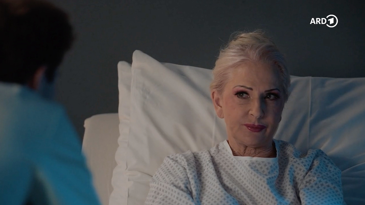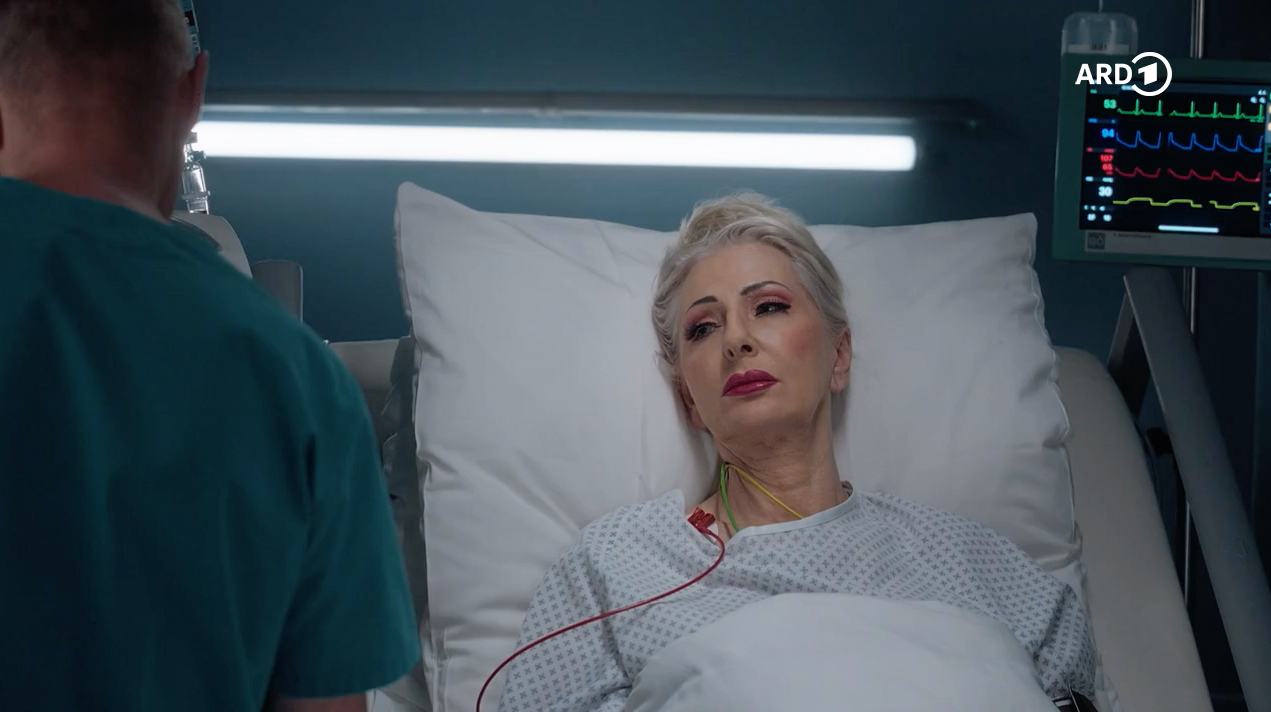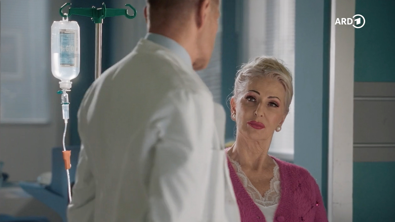 Dr. Kaminski (Udo Schenk) konnte bisher die Ursache für die Schmerzen von Karen Olfers (Desiree Nick) noch nicht finden. Karen Olfers versucht Kaminski klarzumachen, wie dringend sie in ihrem Kosmetikladen gebraucht wird.